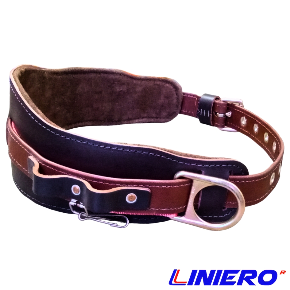 Este cinturón se distingue por sus accesorios adicionales, como un cordel de cuero para sostener objetos y un mosquetón. Estos elementos añaden versatilidad, proporcionando soluciones prácticas para las necesidades específicas de los profesionales en el campo de trabajo en altura.