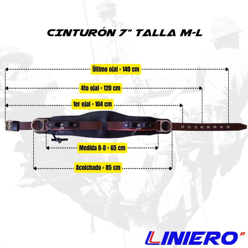 Este Cinturón de Liniero de 7 pulgadas, confeccionado en cuero natural, destaca por su durabilidad y resistencia esenciales para trabajadores en altura. El acolchado con esponja de EVA de 6 mm brinda comodidad durante largas jornadas laborales, y la correa de ajuste presenta ojetillos reforzados para proteger el cuero, aumentando la vida útil del cinturón.